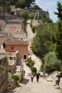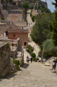 The castle at Xativa runs east and west on a significant ridge just south of the city. The western site is higher and more significant, but both have a strategic view of the town and surrounding area. There are walls along the east side of the ridge and additional walls heading north from the two ‘castles’ or towers. I would not want to be an invader when these were in use. We headed to the west end first.
