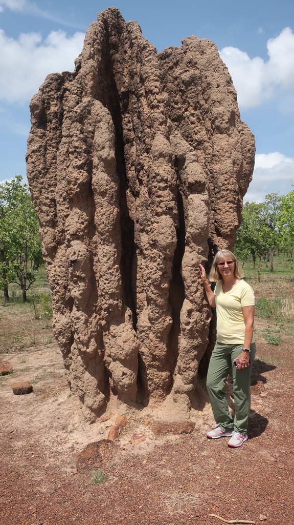 Another notable aspect of the park is the abundance of termite mounds. These monsters can be over 25 feet tall. We stopped at one that was maybe 13 feet high and had our pictures taken with it. I kept looking over my shoulder for the swarm coming out of mound to carry us away, but it never came. Before coming to Australia, i’d always thought the mounds were sort of crusty-soft or sandy, but they’re not. Through some chemical process, the termites build the walls of the mound to be nearly as hard as a rock. I knocked on one to get an idea of how hard it was – it was solid. Then, when I thought I heard a rumble of termites massing for an attack from inside the mound I ran for the safety of the bus.