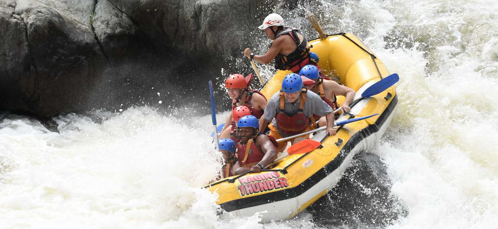 With helmets and life jackets in place, we pushed off. Our guide, Yoshi, had us run through procedures and instructions for paddling a few more times before we hit the rapids. At this time of the year, the river only has Class 3 rapids, but that was sure enough for us. We paddled, got tossed around, bounced the raft off rocks and generally had a great time. While no one from our raft ended up in the water by accident, some other rafters weren’t so lucky. We did leave the rafts a couple of times to ‘aggressively float’ through some of the less demanding sections. One section sucked you down under the water and spit you out the other side. That was awesome.